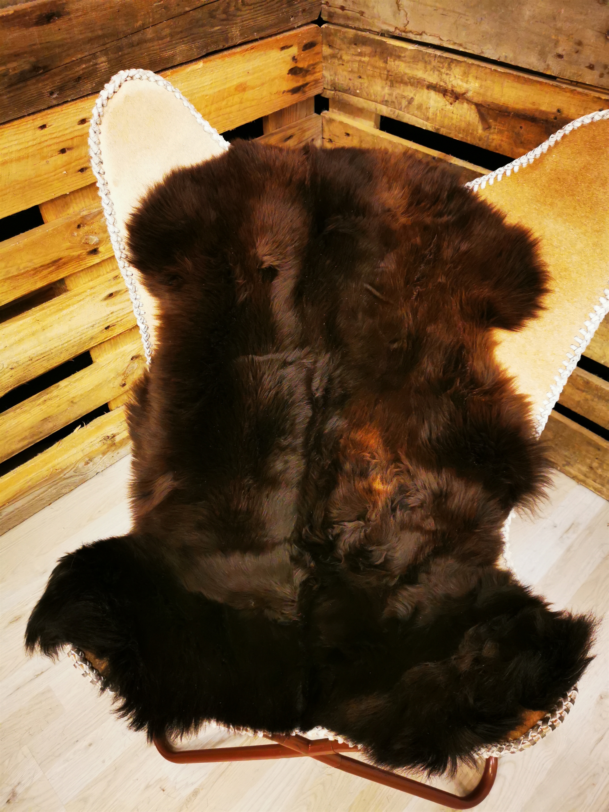 Skindet måler 95cm. Unikt lammeskind. Skindet stammer fra bæredygtig produktion. 2.sortering skind. Skindet kan have følgende fejl: Plet, Kortklippet, Farvet, Ude af facon, Syet sammen på bagsiden, Hul. Når du bestiller dette skind, så er det også dette skind som du for tilsendt. Alle skindene er nummereret med unikke numre.