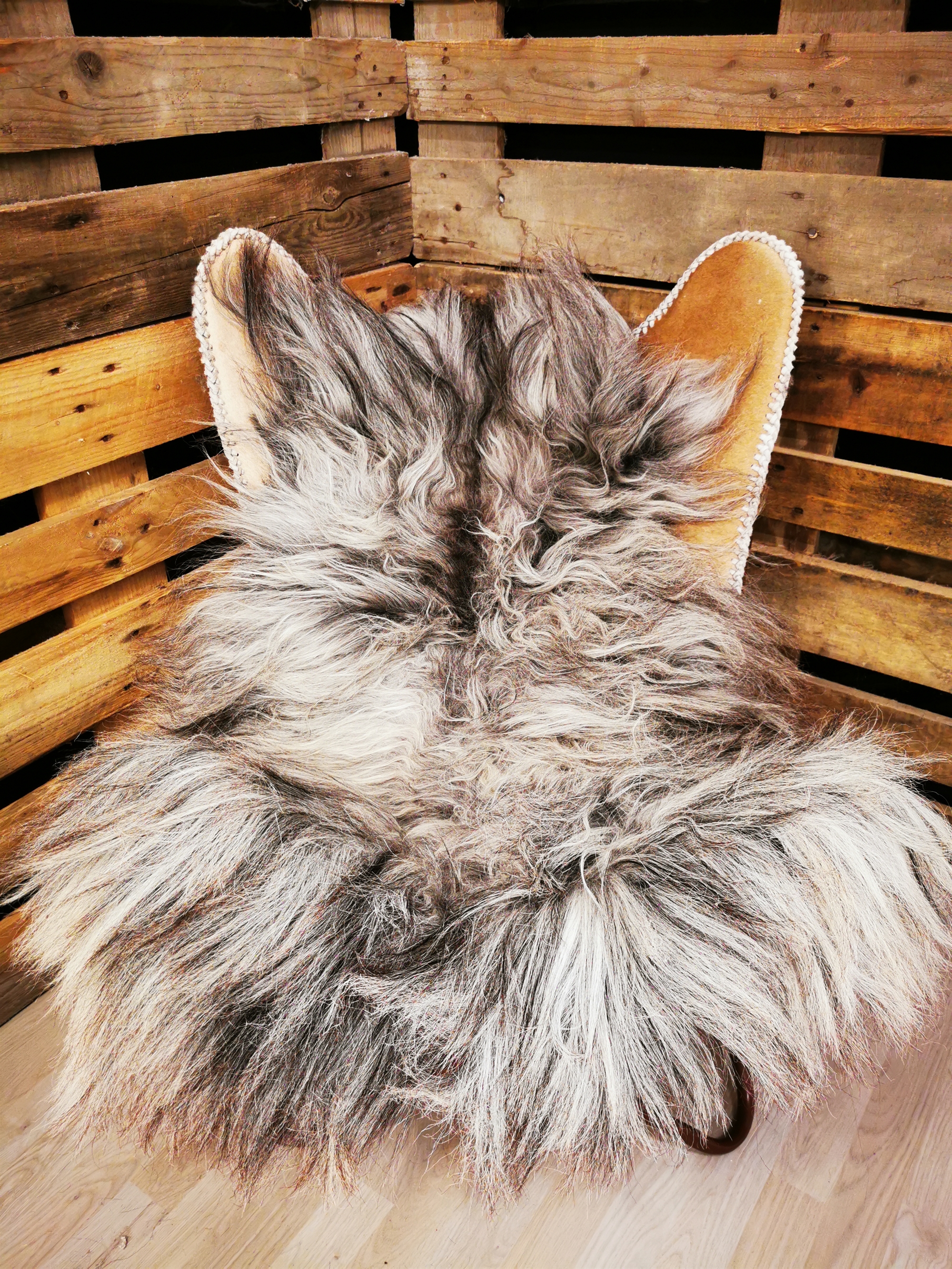 Skindet måler 115cm. Unikt lammeskind. Skindet stammer fra bæredygtig produktion. 2.sortering skind. Skindet kan have følgende fejl: Plet, Kortklippet, Farvet, Ude af facon, Syet sammen på bagsiden, Hul. Når du bestiller dette skind, så er det også dette skind som du for tilsendt. Alle skindene er nummereret med unikke numre.