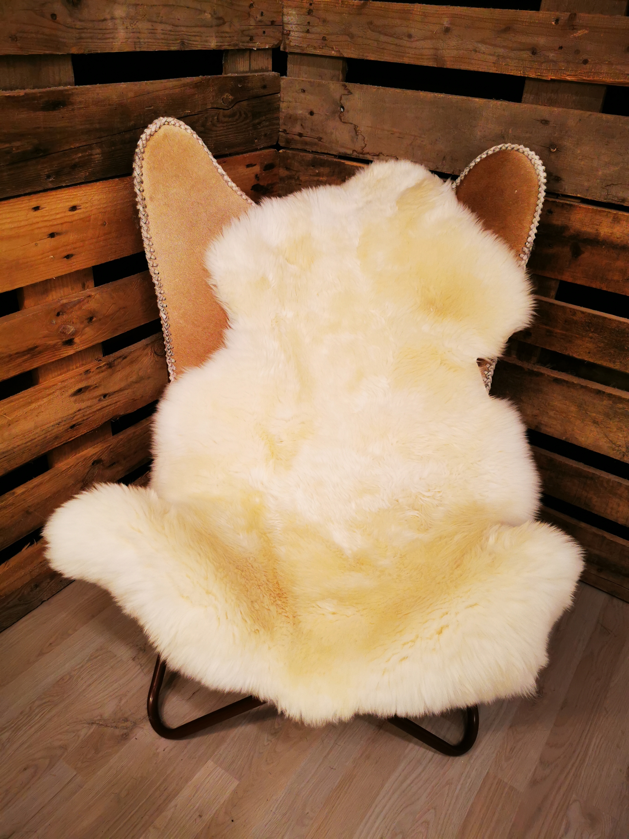Skindet måler 110cm. Unikt lammeskind. Skindet stammer fra bæredygtig produktion. 2.sortering skind. Skindet kan have følgende fejl: Plet, Kortklippet, Farvet, Ude af facon, Syet sammen på bagsiden, Hul. Når du bestiller dette skind, så er det også dette skind som du for tilsendt. Alle skindene er nummereret med unikke numre.
