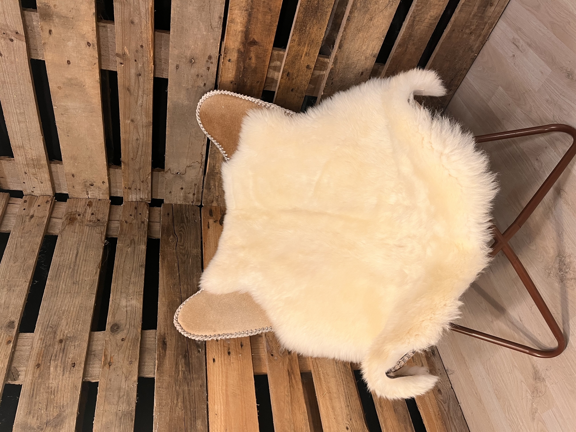 Skindet måler 105cm. Unikt lammeskind. Skindet stammer fra bæredygtig produktion. 2.sortering skind. Skindet kan have følgende fejl: Plet, Kortklippet, Farvet, Ude af facon, Syet sammen på bagsiden, Hul. Når du bestiller dette skind, så er det også dette skind som du for tilsendt. Alle skindene er nummereret med unikke numre.
