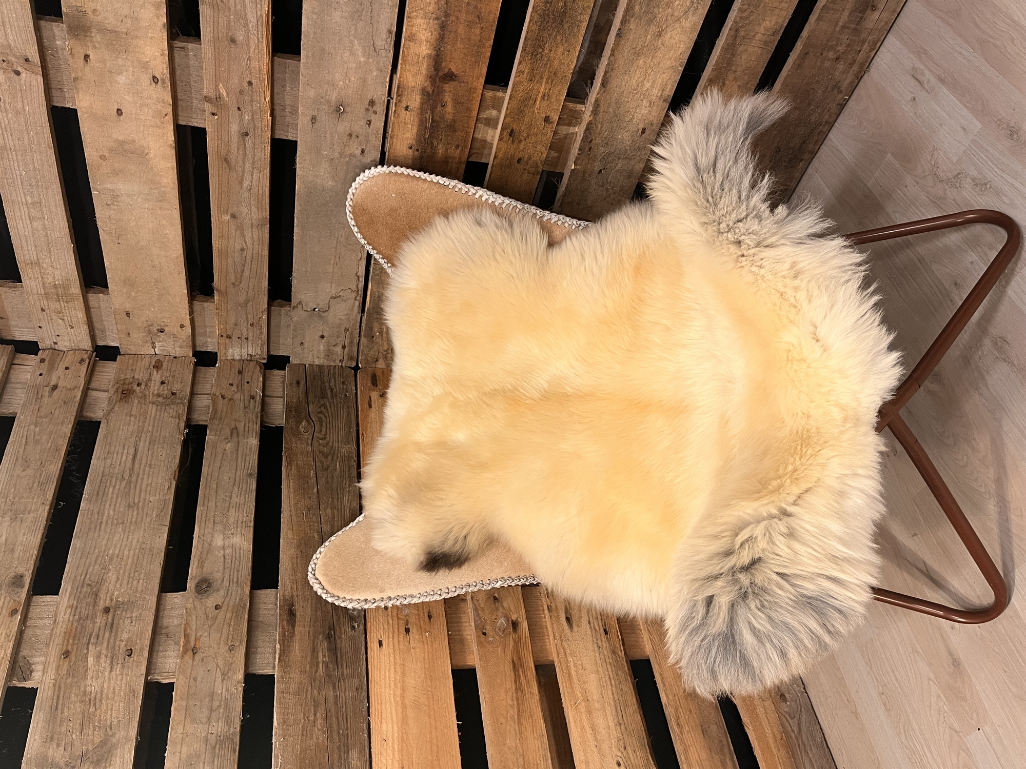 Skindet måler 110cm. Unikt lammeskind. Skindet stammer fra bæredygtig produktion. 2.sortering skind. Skindet kan have følgende fejl: Plet, Kortklippet, Farvet, Ude af facon, Syet sammen på bagsiden, Hul. Når du bestiller dette skind, så er det også dette skind som du for tilsendt. Alle skindene er nummereret med unikke numre.