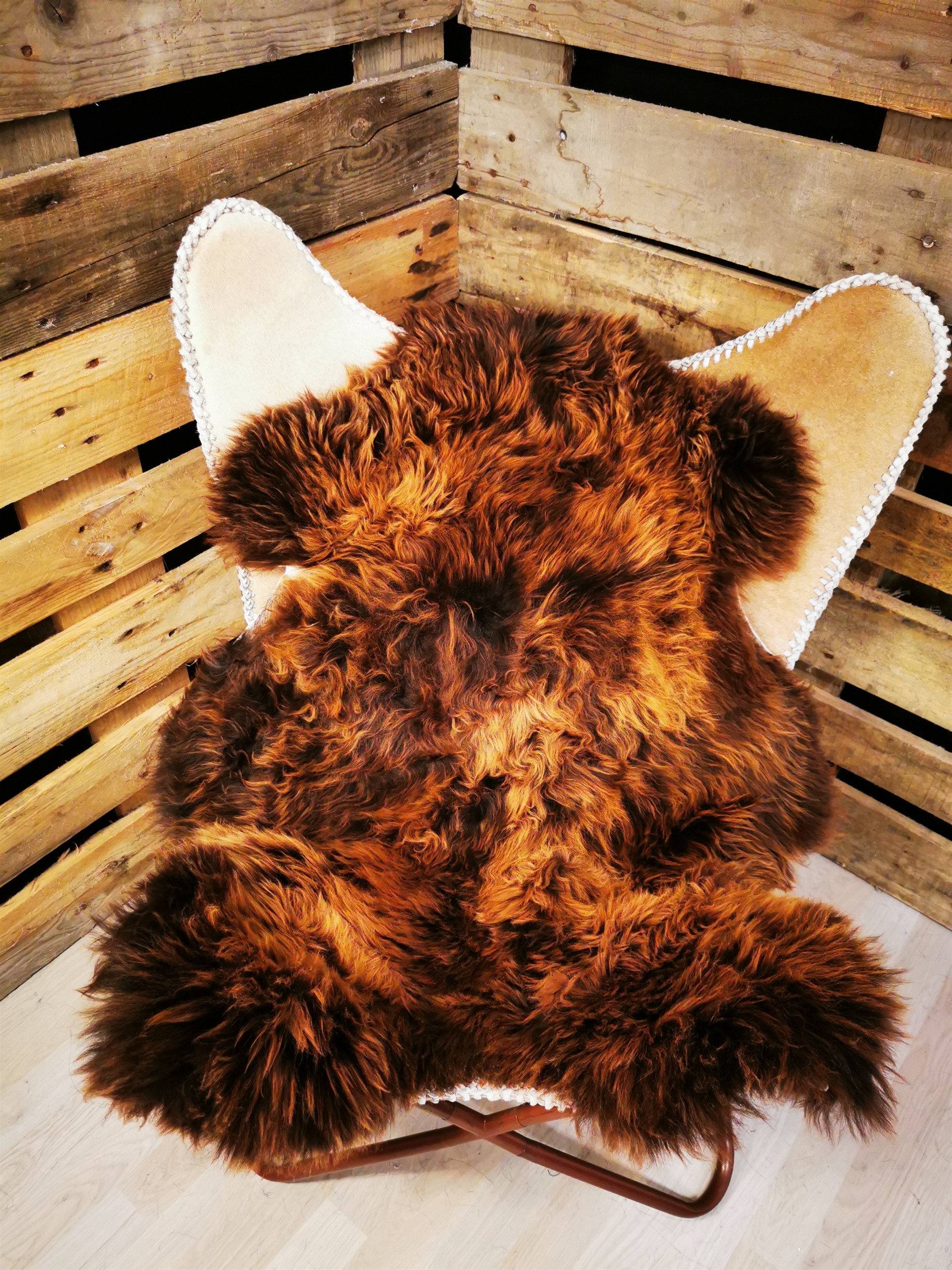 Europæisk Flame stammer fra får, der græsser frit på europæiske enge. Pelsens naturlige tekstur og farve afspejler det harmoniske samspil mellem natur og dyrevelfærd, hvilket gør skindet til en autentisk og værdifuld tilføjelse til dit hjem.