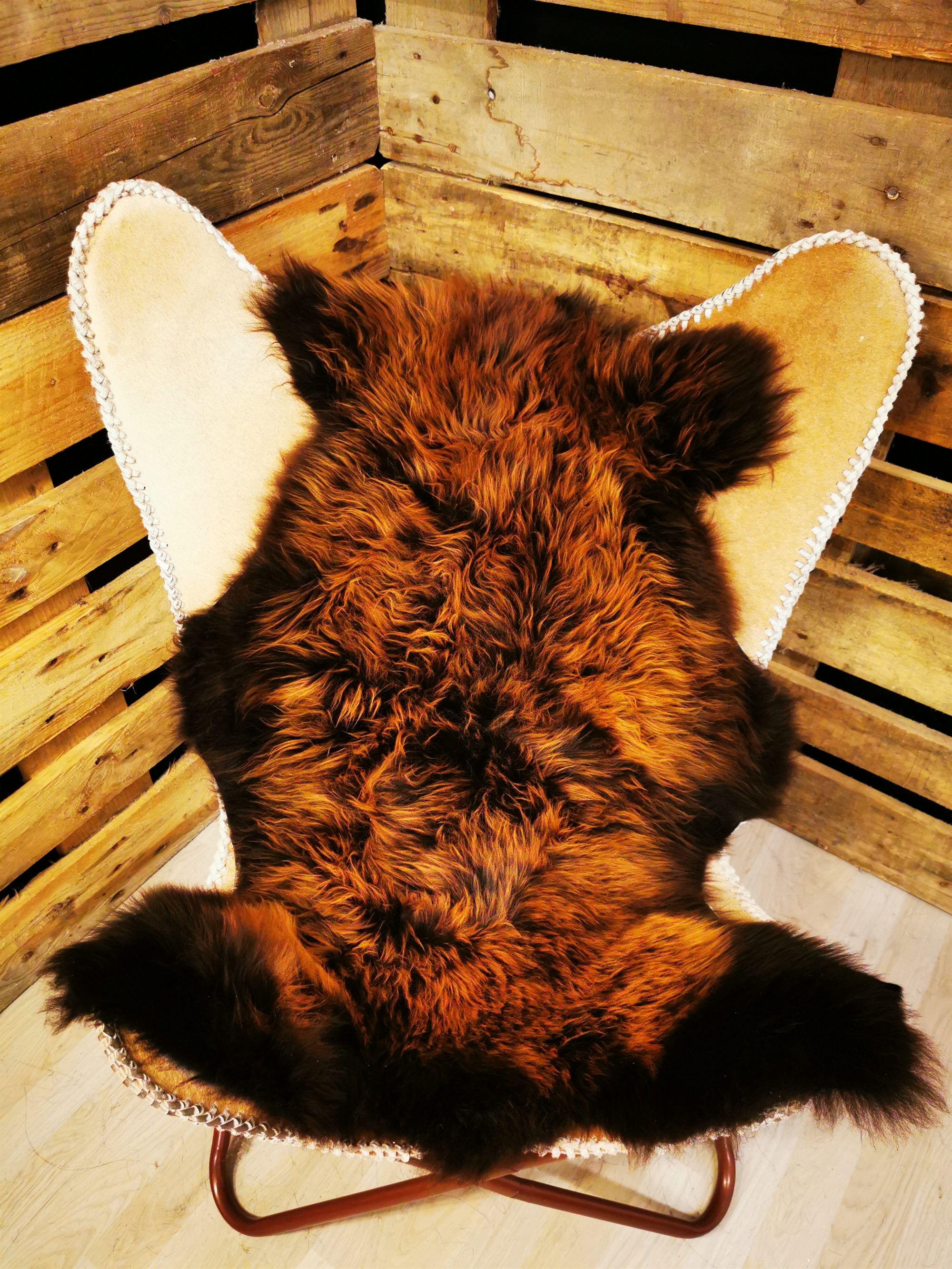 Europæisk Flame stammer fra får, der græsser frit på europæiske enge. Pelsens naturlige tekstur og farve afspejler det harmoniske samspil mellem natur og dyrevelfærd, hvilket gør skindet til en autentisk og værdifuld tilføjelse til dit hjem.