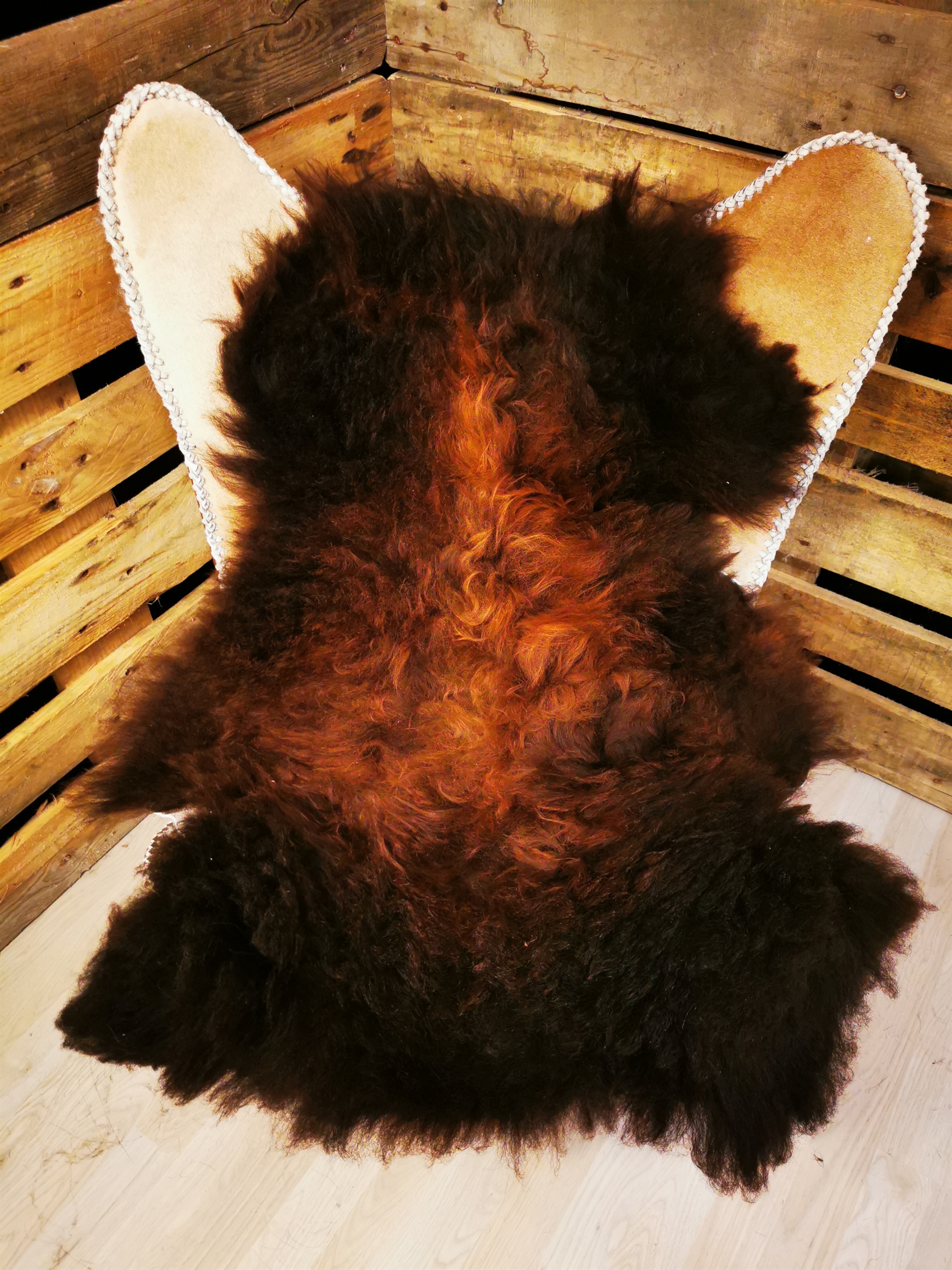 Vores Europæisk Flame lammeskind er en ægte fryd for øjet. Den varme brune basefarve, kombineret med de gyldne highlights, skaber en fortryllende kontrast og en luksuriøs glød. De naturlige variationer i pelsens struktur gør hvert skind til et unikt kunstværk.