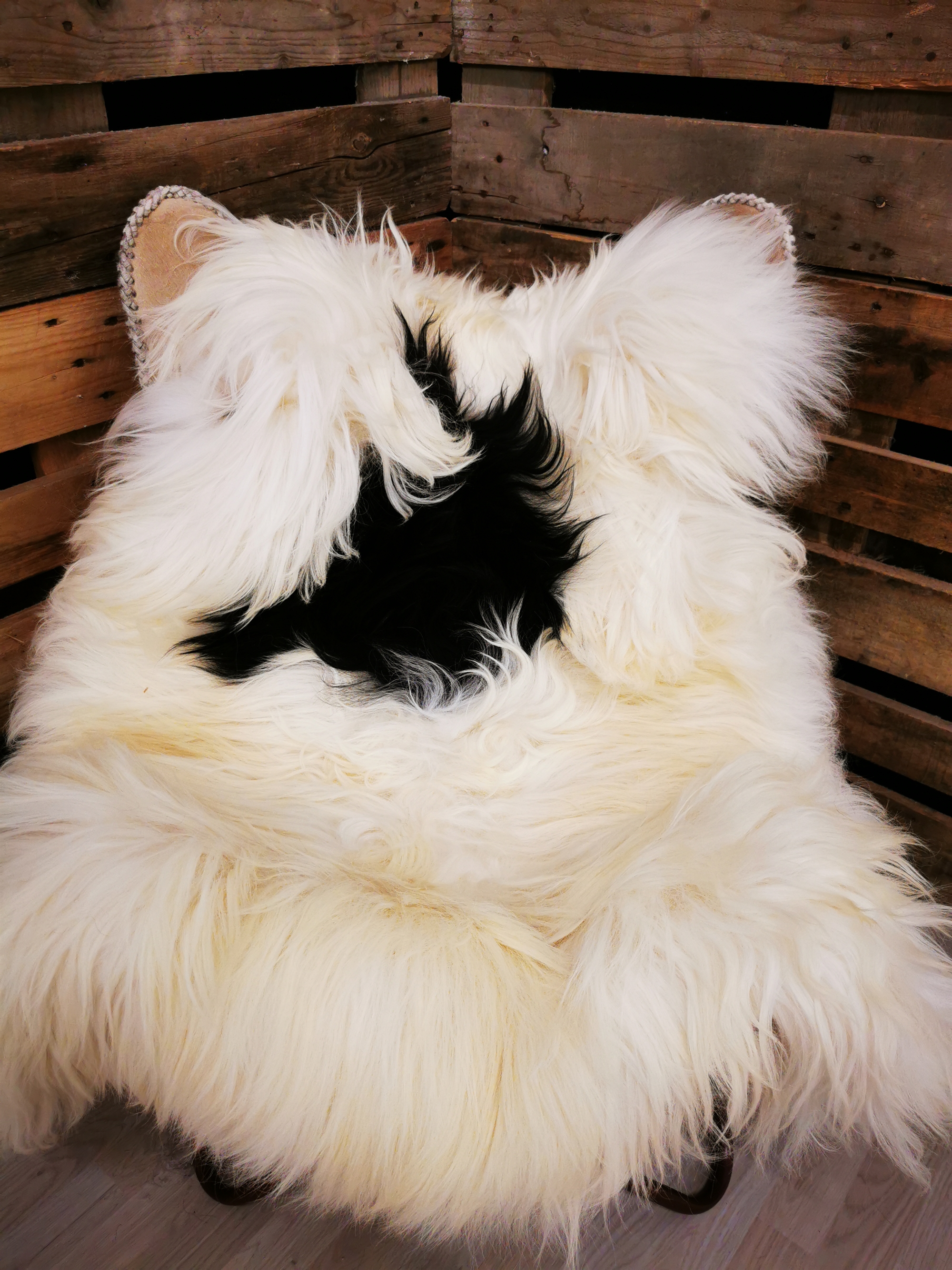 Skindet måler 130cm.Unikt Islandsk lammeskind. Skindet stammer fra bæredygtig produktion på Island.