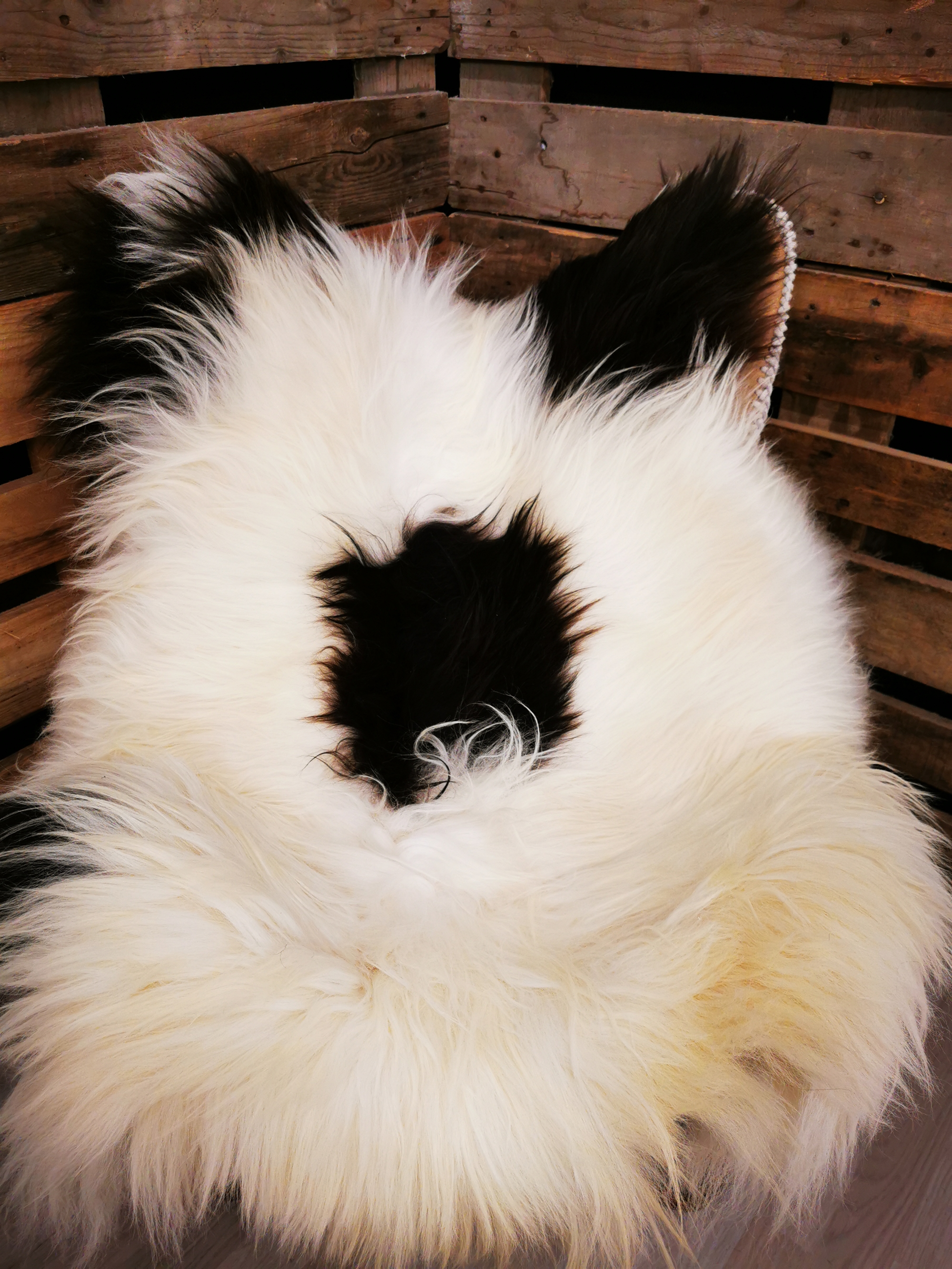 Skindet måler 140cm.Unikt Islandsk lammeskind. Skindet stammer fra bæredygtig produktion på Island.