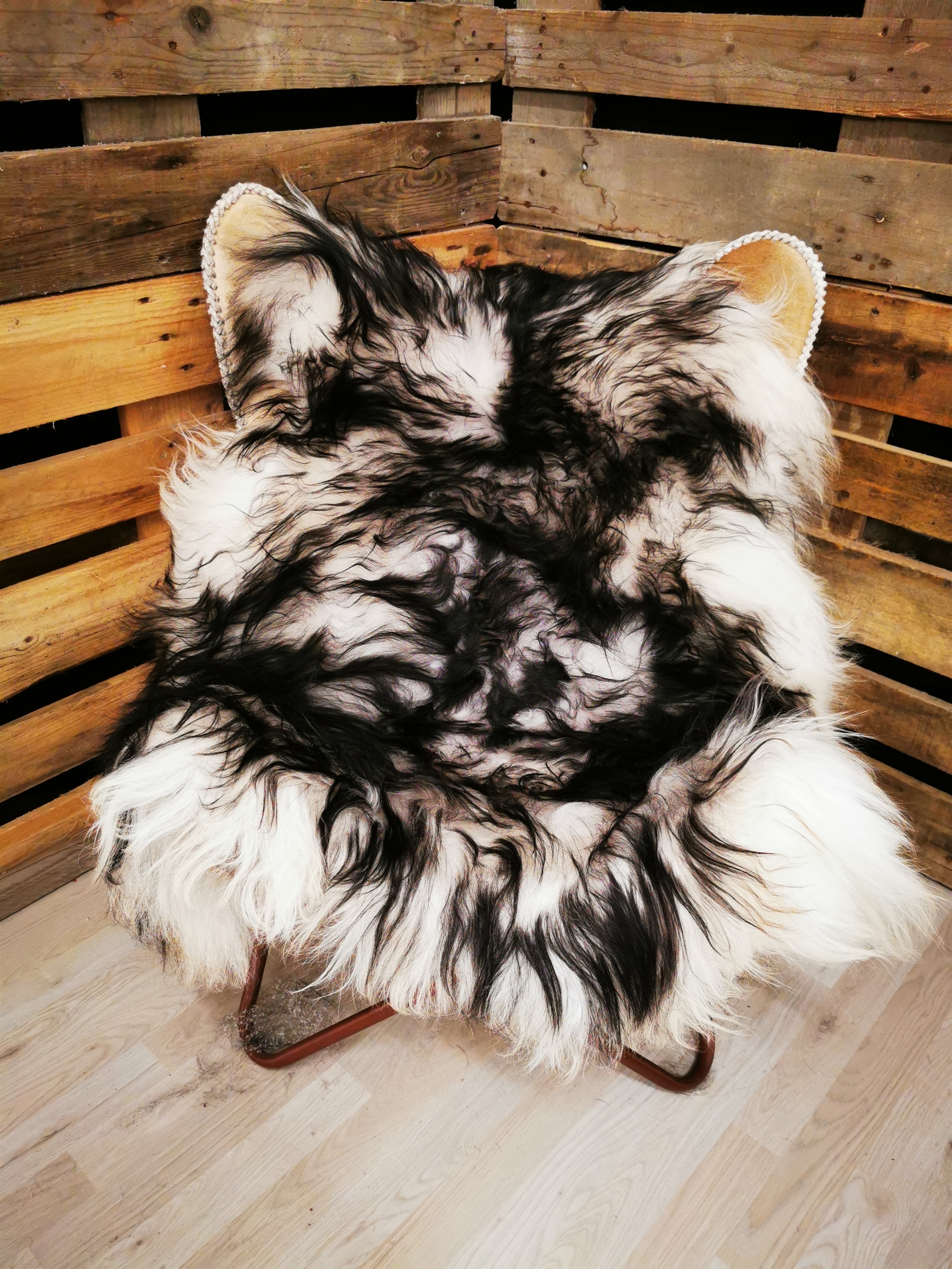 Skindet måler 120cm. "Opdag den betagende skønhed af vores islandske "Silver Shadow" lammeskind. Dette naturlige hvide lammeskind er blevet fortryllet med elegante grå farvetoner og dekorative sorte spidser, der skaber en visuelt imponerende kontrast. Hvert lammeskind er omhyggeligt udvalgt for sin høje kvalitet og blødhed, hvilket giver en luksuriøs og behagelig oplevelse. Den nordiske inspiration i "Silver Shadow" navnet afspejler det smukke landskab og den mystiske atmosfære i Island. Dette lammeskind er ikke kun en smuk dekoration, men det tilføjer også varme og hygge til ethvert rum. Brug det som et elegant tæppe over en stol eller sofa, eller læg det på gulvet for at skabe en indbydende atmosfære. Det er også perfekt til at skabe en hyggelig oase i din læse- eller sovekrog. Vores "Silver Shadow" lammeskind er et unikt og eksklusivt stykke, der tilføjer en subtil nordisk charme til dit hjem. Hver eneste detalje er omhyggeligt håndteret for at sikre, at du får et produkt af højeste kvalitet. Forkæl dig selv eller en elsket med dette smukke islandske "Silver Shadow" lammeskind, der bringer en følelse af elegance og naturlig skønhed ind i dit hjem."