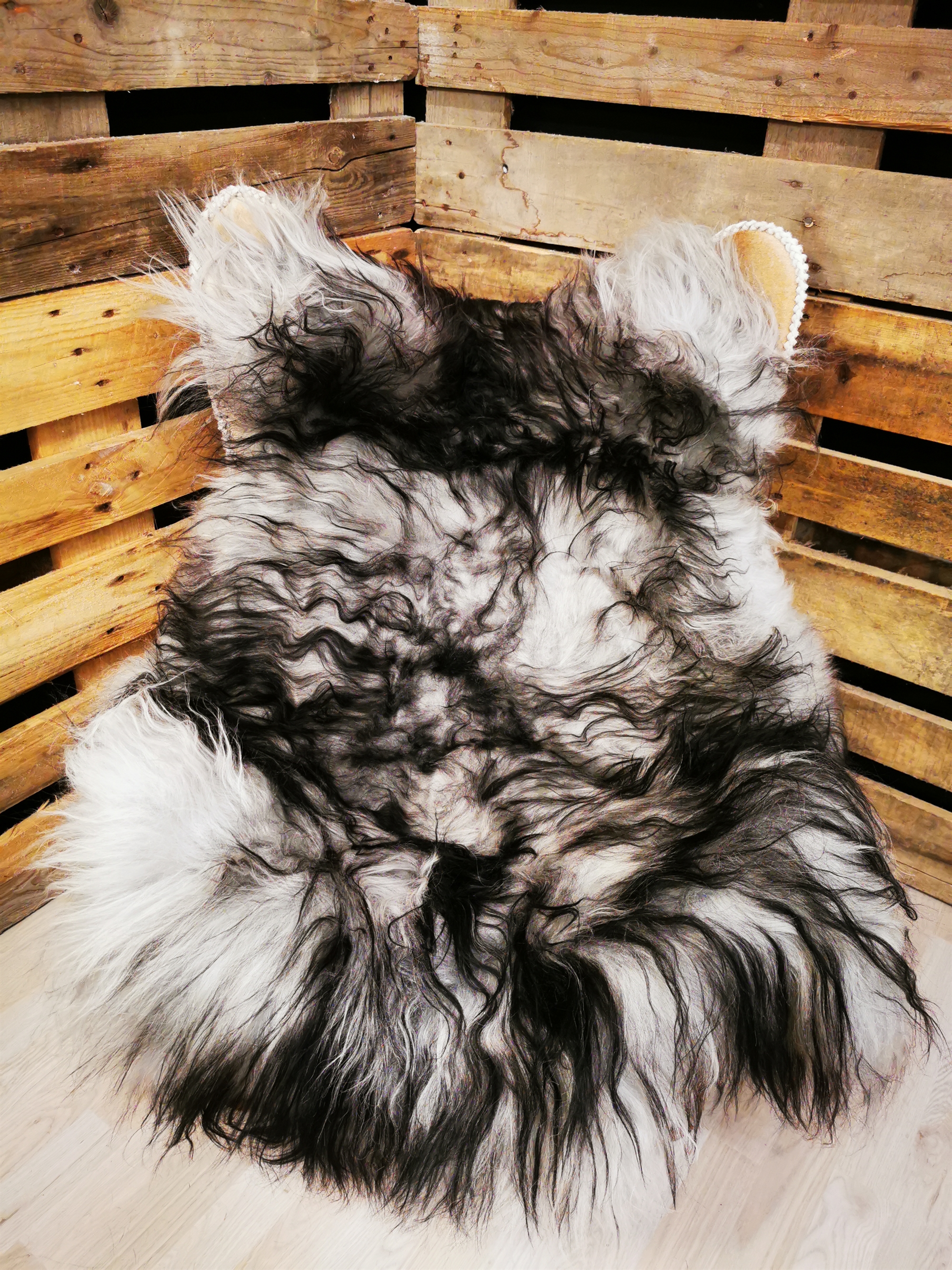 Skindet måler 130cm. "Opdag den betagende skønhed af vores islandske "Silver Shadow" lammeskind. Dette naturlige hvide lammeskind er blevet fortryllet med elegante grå farvetoner og dekorative sorte spidser, der skaber en visuelt imponerende kontrast. Hvert lammeskind er omhyggeligt udvalgt for sin høje kvalitet og blødhed, hvilket giver en luksuriøs og behagelig oplevelse. Den nordiske inspiration i "Silver Shadow" navnet afspejler det smukke landskab og den mystiske atmosfære i Island. Dette lammeskind er ikke kun en smuk dekoration, men det tilføjer også varme og hygge til ethvert rum. Brug det som et elegant tæppe over en stol eller sofa, eller læg det på gulvet for at skabe en indbydende atmosfære. Det er også perfekt til at skabe en hyggelig oase i din læse- eller sovekrog. Vores "Silver Shadow" lammeskind er et unikt og eksklusivt stykke, der tilføjer en subtil nordisk charme til dit hjem. Hver eneste detalje er omhyggeligt håndteret for at sikre, at du får et produkt af højeste kvalitet. Forkæl dig selv eller en elsket med dette smukke islandske "Silver Shadow" lammeskind, der bringer en følelse af elegance og naturlig skønhed ind i dit hjem."