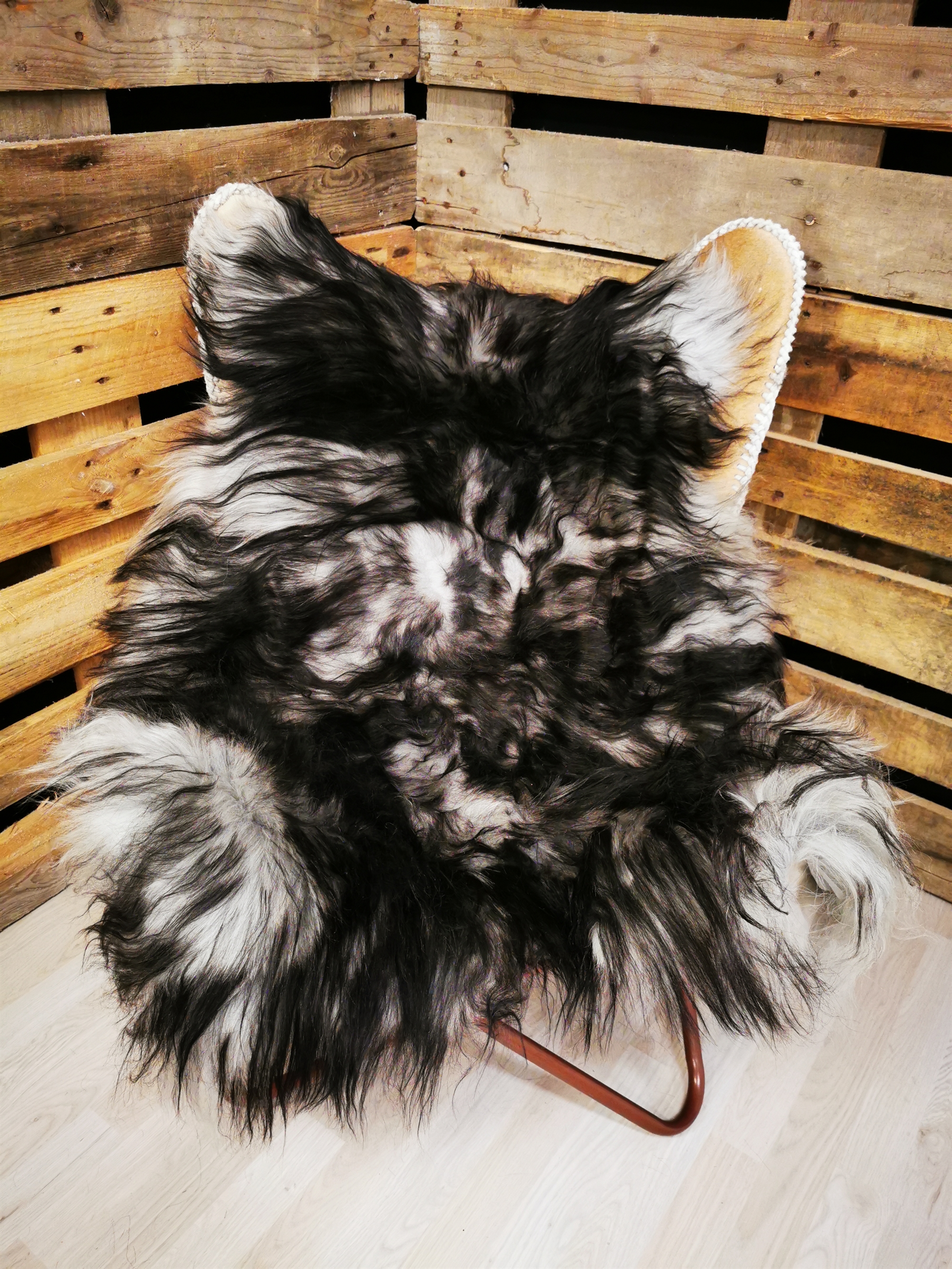 Skindet måler 120cm. "Opdag den betagende skønhed af vores islandske "Silver Shadow" lammeskind. Dette naturlige hvide lammeskind er blevet fortryllet med elegante grå farvetoner og dekorative sorte spidser, der skaber en visuelt imponerende kontrast. Hvert lammeskind er omhyggeligt udvalgt for sin høje kvalitet og blødhed, hvilket giver en luksuriøs og behagelig oplevelse. Den nordiske inspiration i "Silver Shadow" navnet afspejler det smukke landskab og den mystiske atmosfære i Island. Dette lammeskind er ikke kun en smuk dekoration, men det tilføjer også varme og hygge til ethvert rum. Brug det som et elegant tæppe over en stol eller sofa, eller læg det på gulvet for at skabe en indbydende atmosfære. Det er også perfekt til at skabe en hyggelig oase i din læse- eller sovekrog. Vores "Silver Shadow" lammeskind er et unikt og eksklusivt stykke, der tilføjer en subtil nordisk charme til dit hjem. Hver eneste detalje er omhyggeligt håndteret for at sikre, at du får et produkt af højeste kvalitet. Forkæl dig selv eller en elsket med dette smukke islandske "Silver Shadow" lammeskind, der bringer en følelse af elegance og naturlig skønhed ind i dit hjem."