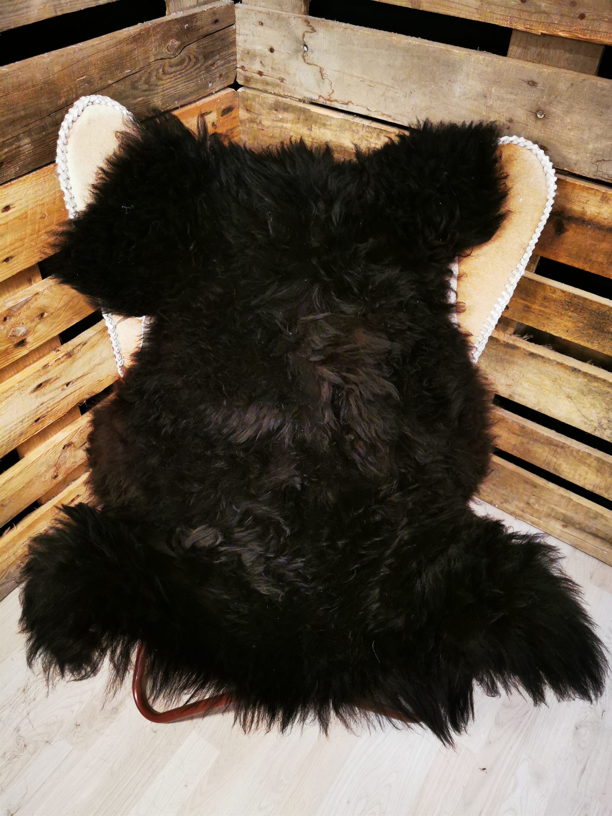 Skindet måler 115cm. Unikt Islandsk lammeskind. Skindet stammer fra bæredygtig produktion på Island. Når du bestiller dette skind, så er det også dette skind som du for tilsendt. Alle skindene er nummereret med unikke numre.